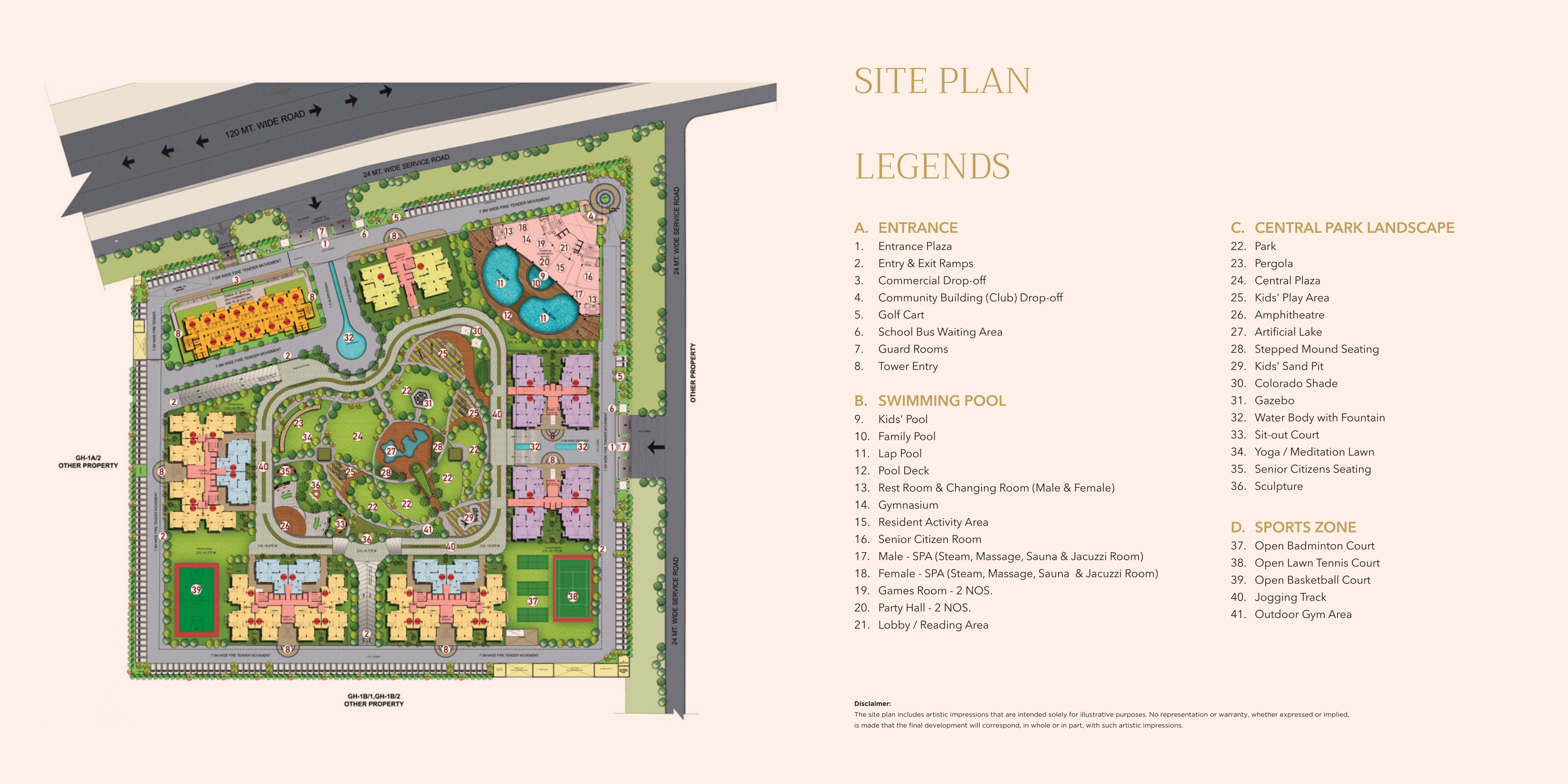 The township has been crafted with lifestyle-enhancing amenities such as wide internal roads, landscaped green parks, 24x7 security with CCTV monitoring, a grand clubhouse, an amphitheater, children’s play areas, and even a serene temple within the premises.