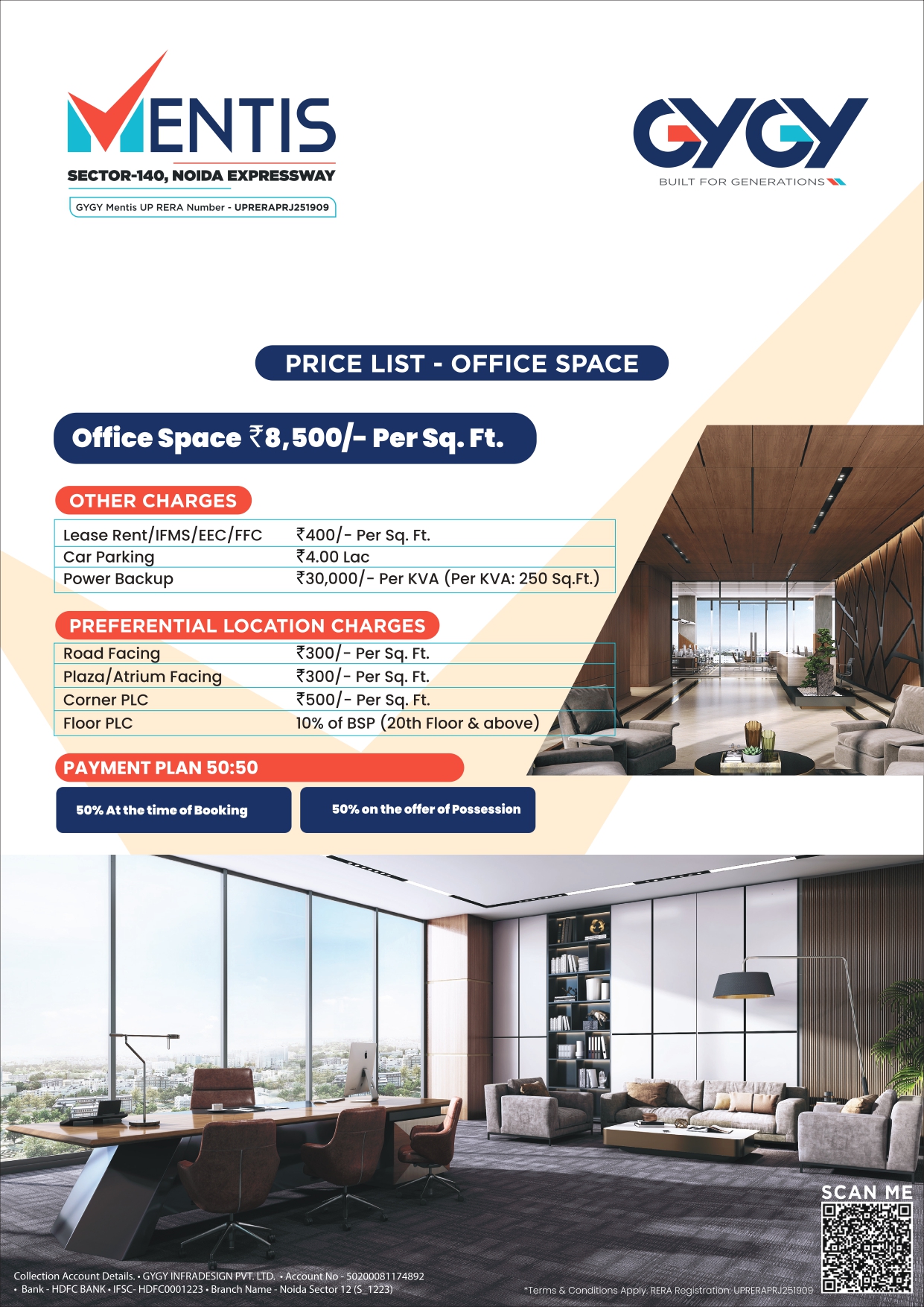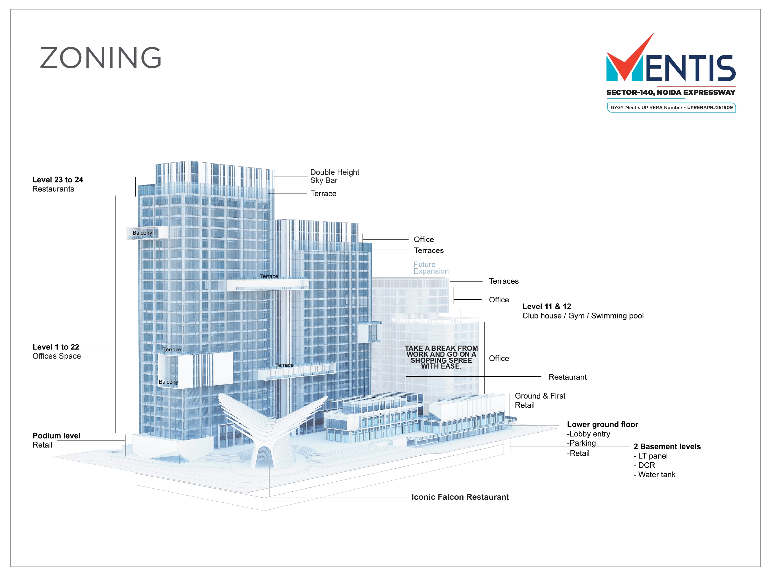 Retail space located at GYGY Mentis, Sector-140 Noida Expressway – a strategic commercial hub offering modern retail units at ₹34,000 per sq.ft. These retail outlets promise high visibility, footfall, and assured returns of 12% per annum.